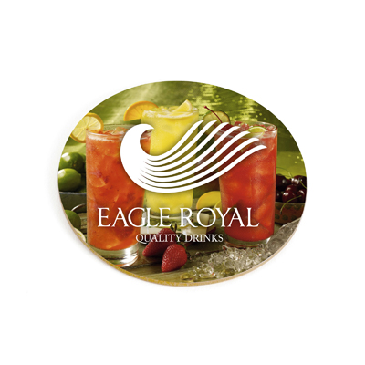 Single circular coaster with traditional cork backing for excellent heat insulation and increased grip. Wipe clean with damp cloth. A lightweight, low cost and easy to post promotion. Ideal for use at home or in the office.
