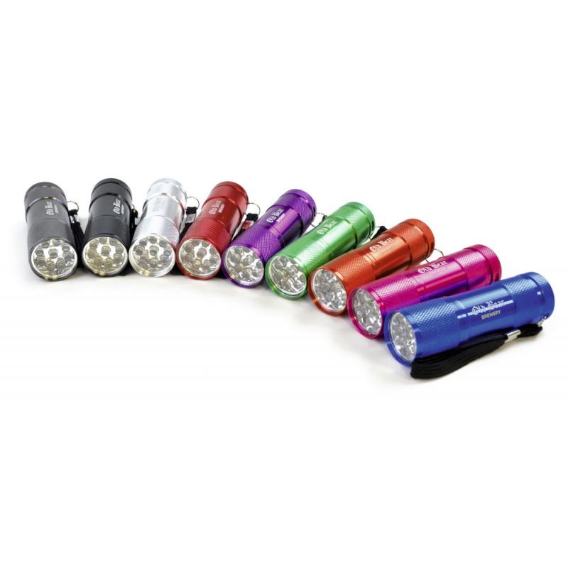 High powered metal 9 LED torch. A fantastic all round promotional giveaway with functionality across the board. Batteries included.
